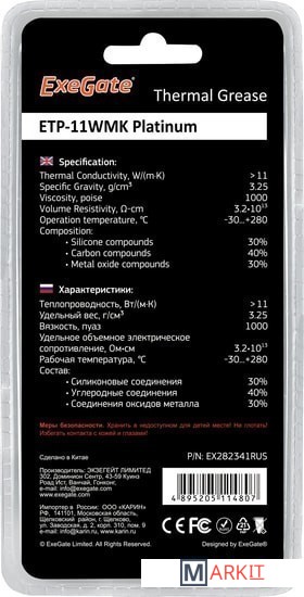 Markit » Системы охлаждения » Термопаста ExeGate ETP-11WMK Platinum EX282341RUS (2 г.)